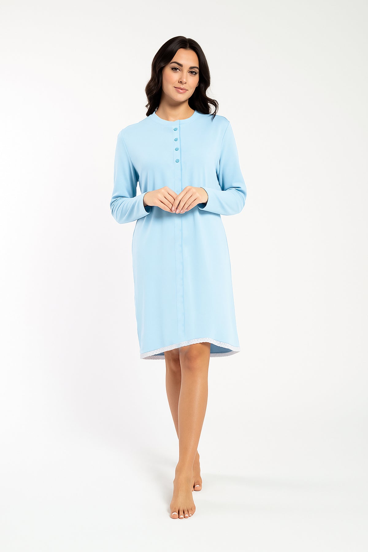 Canotta in interlock morbido e leggero, con apertura frontale a bottoni e rifiniture delicate, ideale per garantire comfort e praticità. Il design essenziale è arricchito da piccoli dettagli che donano un tocco femminile e raffinato. Disponibile nei colori Cielo e Lavanda.