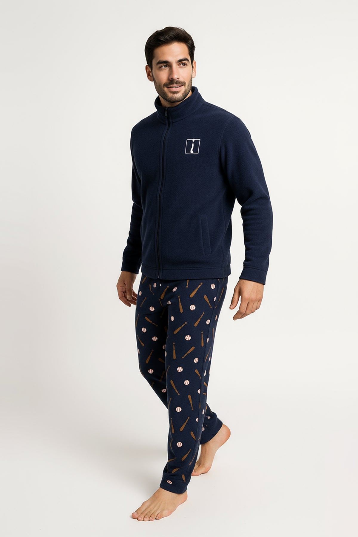Pigiama in coral con apertura a zip, pratico e confortevole. La maglia calda si abbina ai pantaloni stampati, creando un look moderno e funzionale per la stagione fredda. Disponibile nei colori Navy e Avio.